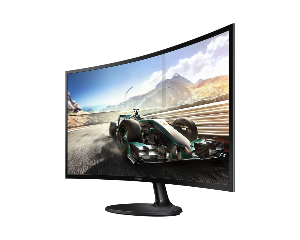 - The curved monitor wraps more closely around your field of vision to create a wider view which enhances depth perception and minimizes peripheral distractions