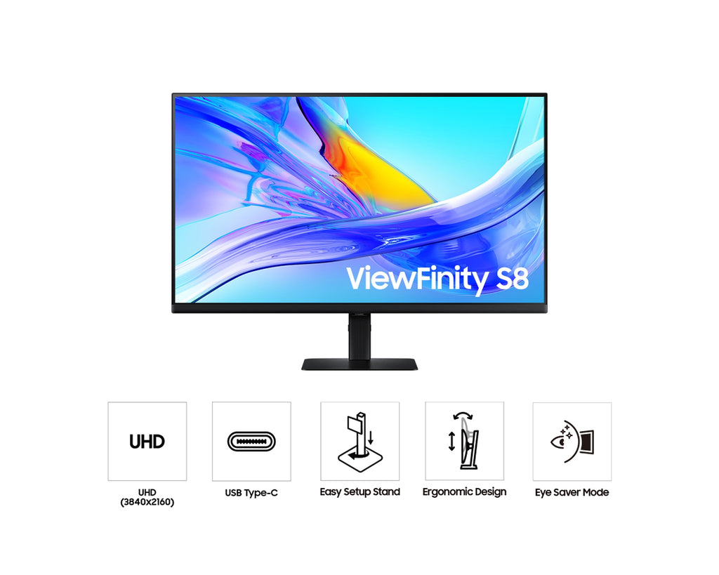 The 2024 Samsung ViewFinity monitors contain at least 14% recycled plastic. Plus, we use no chemical sprays on the monitor's plastic, and use glue instead of staples in the packaging box joint, making it possible to recycle them.