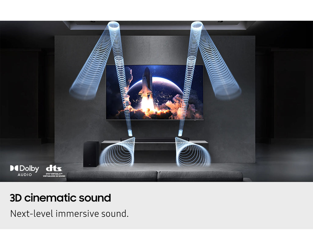 Boost your viewing experience with integrated sound from your TV and soundbar, effortlessly synced with AI. Relax and let Q-Symphony handle the rest. Elevate your audio, perfected by Samsung.2