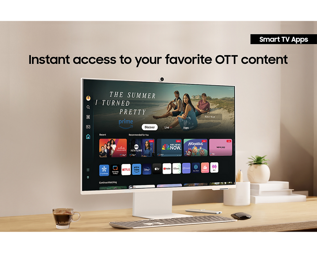 Have to make the most out of a small space, or simply want a second TV? The Smart Monitor is the best choice. Stream OTT content directly from the monitor, or tune into Samsung TV Plus to get live TV channels and on-demand content at zero cost.