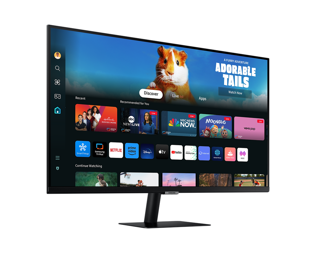 Have to make the most out of a small space, or simply want a second TV? The Smart Monitor is the best choice. Stream OTT content directly from the monitor, or tune into Samsung TV Plus to get live TV channels and on-demand content at zero cost.