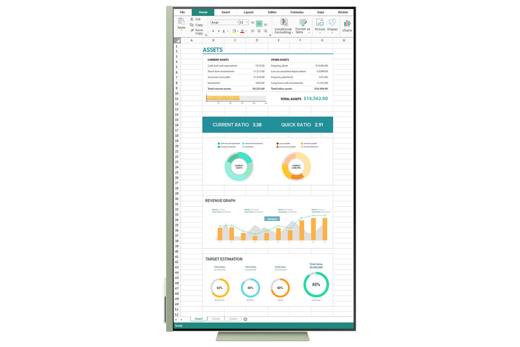 A height-adjustable screen that tilts and swivels gives you the best angle and ultimate utility. Now you can also pivot the screen 90 degrees, which is perfect for viewing long documents with less scrolling. Plus, you can keep your desk clutter-free and clean with VESA-compatible mounting.