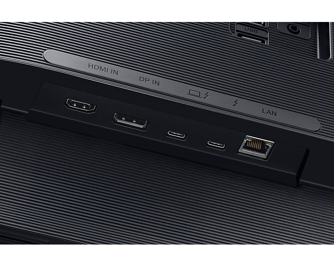 Free up your ports. Connect your PC or laptop with just one Thunderbolt™ 3 cable to access an entire hub of USB ports built into the monitor. There's even an ultra-fast and secure wired LAN connection. Your mouse, keyboard and other devices can stay plugged in, for easy hot-desking.