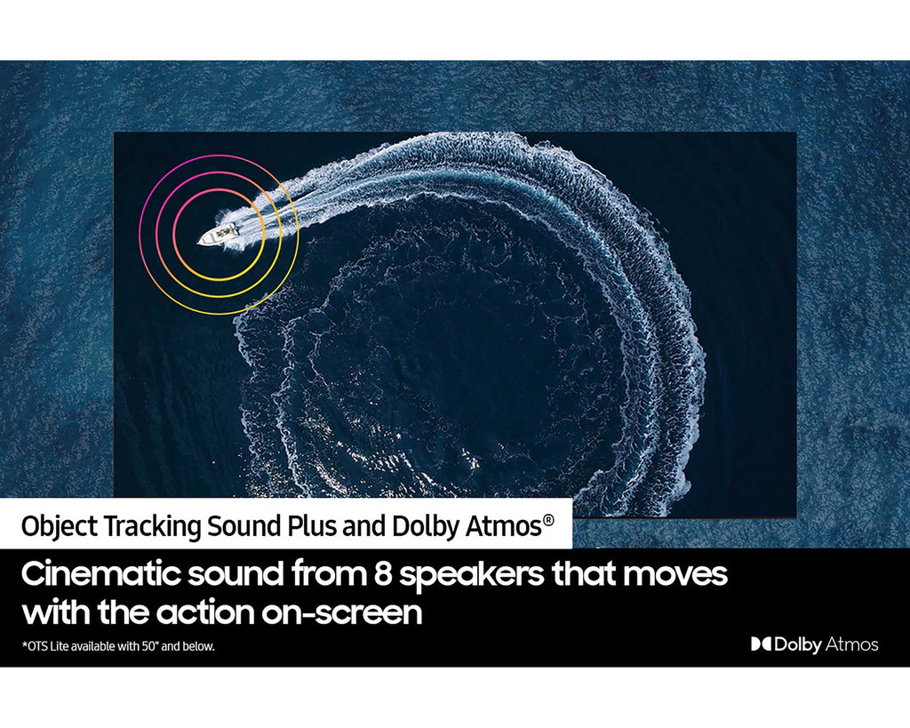 - Object Tracking Sound Plus & Dolby Atmos: Immersive sound that follows the action on screen with 8 TV speakers