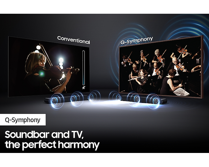 - The Ultimate Home Cinema Experience With Q-Symphony - Put the power of a cinema in your living room when you pair a Samsung TV and Samsung Soundbar. Smart AI works to utilize the channels from both devices for an immersive sound experience.