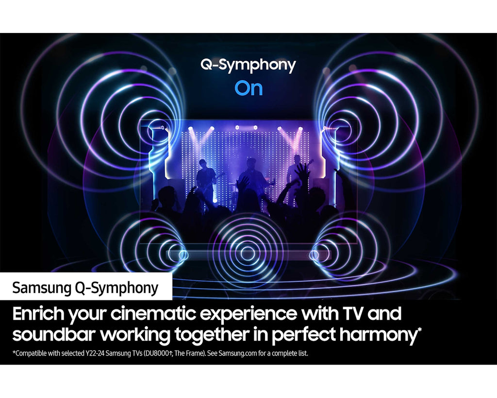 Enhance your viewing experience with amazing sound from both your TV and soundbar, working in perfect harmony, without a complicated set up. Just kick back, and let Q-Symphony take care of it all. Elevate your sound experience, perfected by Samsung.