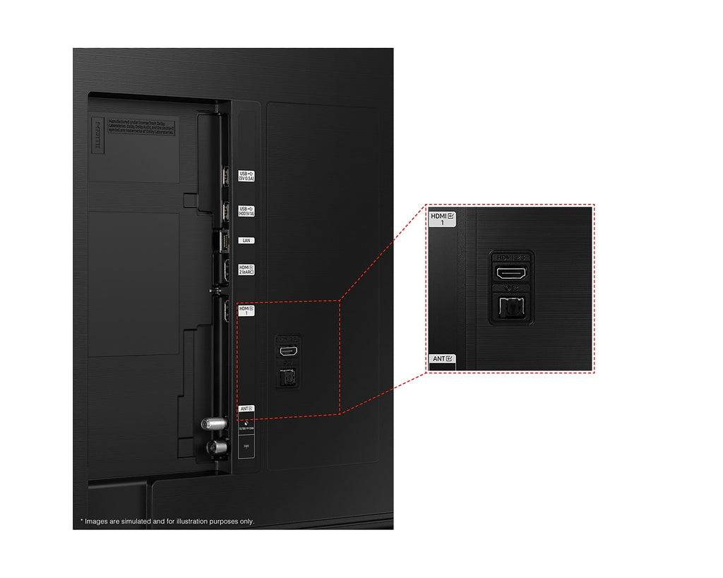 Connectivity: HDMI, USB-A, Ethernet, Digital Audio Out (Optical), CI Slot, eARC/ARC, Wi-Fi 5, Bluetooth5.2, Anynet+, RF In