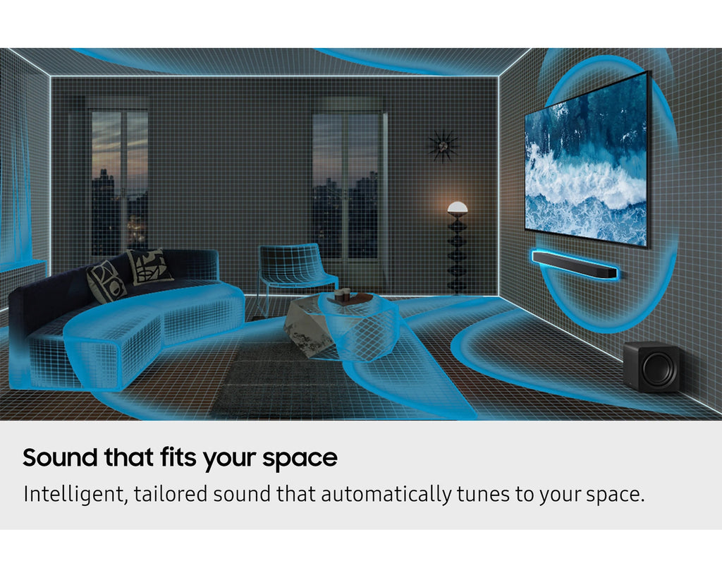 Boost your viewing experience with integrated sound from your TV and soundbar, effortlessly synced with AI. Relax and let Q-Symphony handle the rest. Elevate your audio, perfected by Samsung.