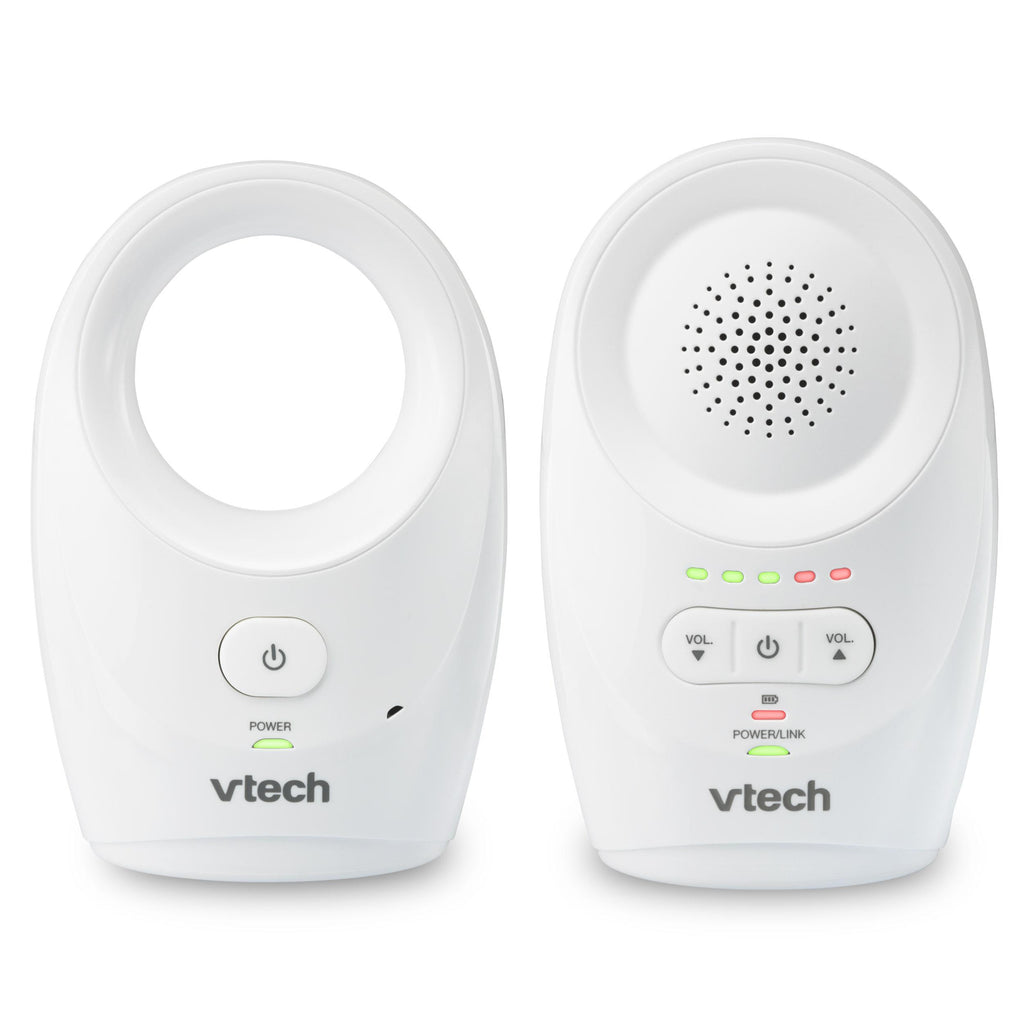 The VTech DM1111 Safe & Sound Audio Baby Monitor is an enhanced range audio monitor, suitable for checking up on your baby from another room. With DECT interference-free communication, you won't miss a thing: digital transmission ensures uninterrupted recording. A five-level sound indicator is ideal for tuning in to more subtle noises for your peace of mind.