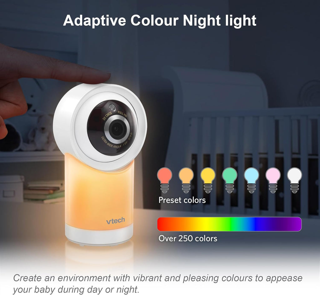 Features: 7" HD Touch Screen, 1080p Full HD Camera, Adaptive Night Light & Night Vision, Two-Way Talk & Soothing Sounds, Temperature Sensor, Smart Connectivity, Motion & Sound Detection Alerts