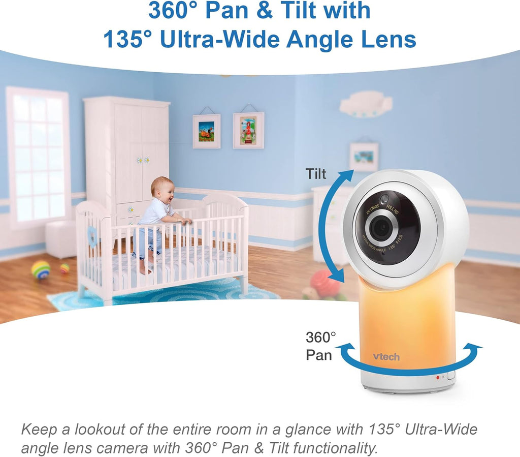 Watch as your little one moves about with 360-degree panoramic viewing and up to 110-degree up/down.